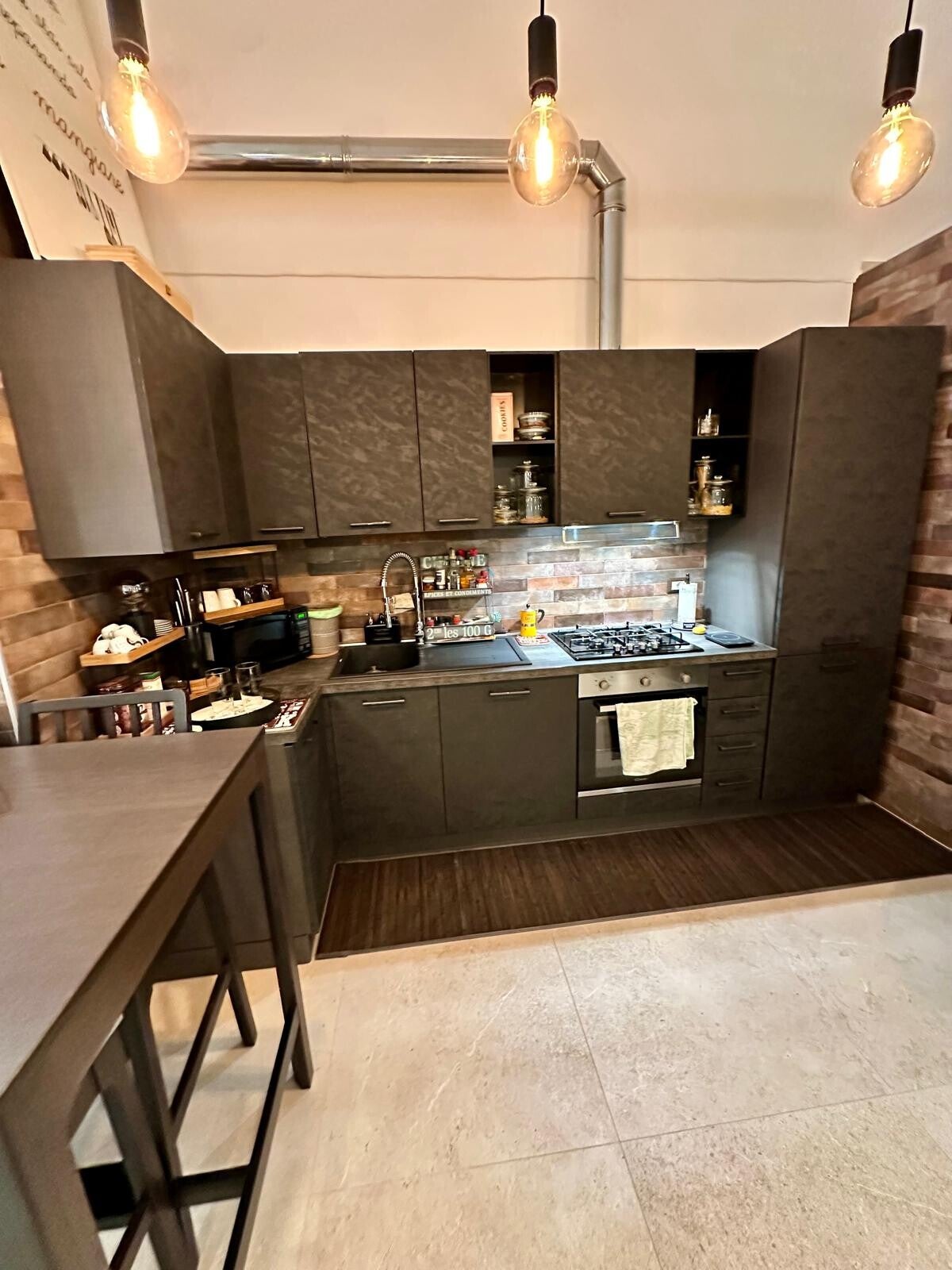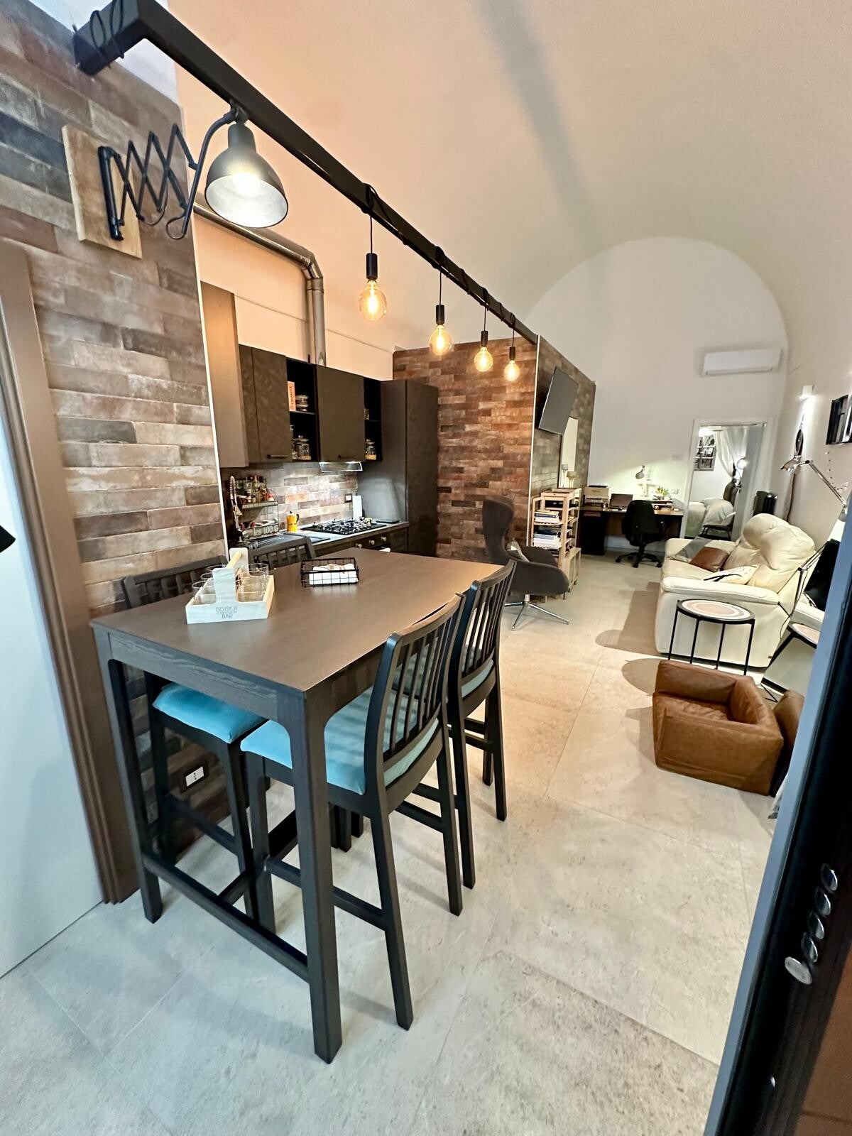 Situato al piano rialzato, questo spazio di 72 mq unisce stile moderno e carattere autentico, grazie alle affascinanti volte a botte con possibilità di soppalco.